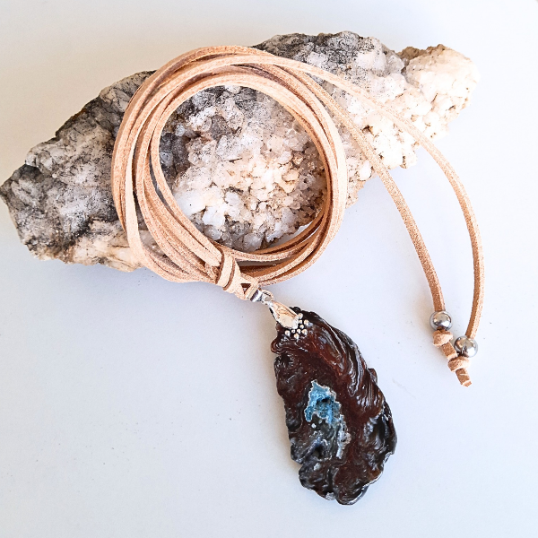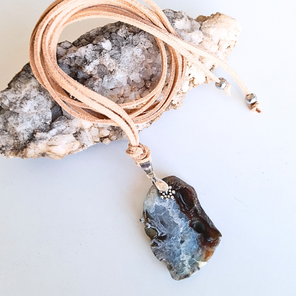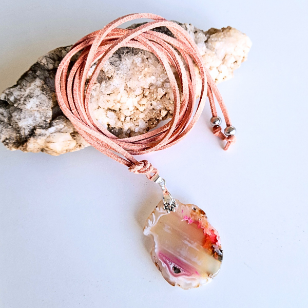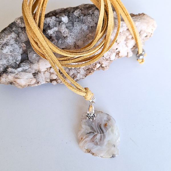 Collar diseñado en gamuza y dije Chapa de Ágata.