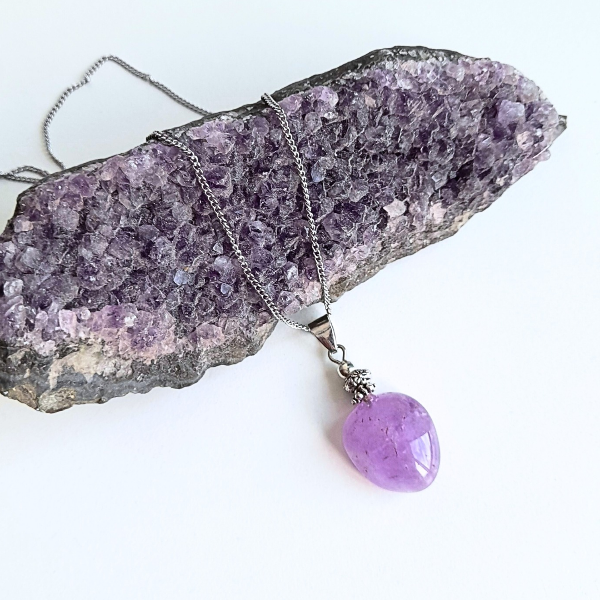 Collar diseñado en cadena de Acero Quirúrgico y Amatista Rolada.