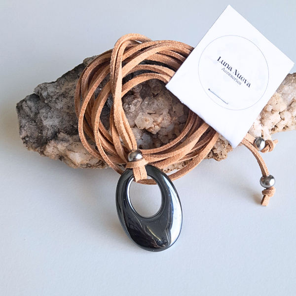 Choker Lazo diseñado en gamuza y dije Hematite.