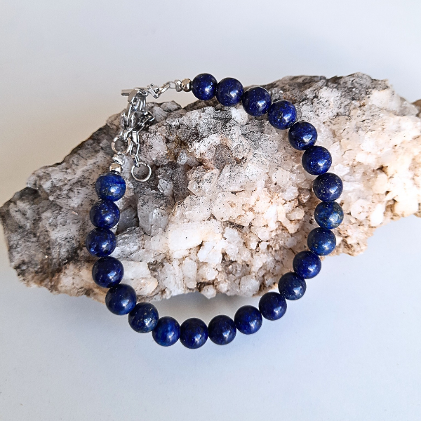 Pulsera diseñada con hilo elástico y esferas de Lapislázuli.